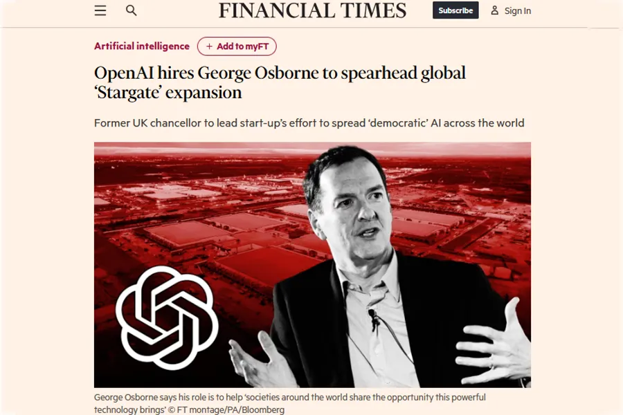 Step forward one George Osborne, famously the former editor of the London Evening Standard - an actual newspaper and the UK capital’s largest dedicated publication - and who is now OpenAI’s nebulously branded Head of OpenAI for Countries.